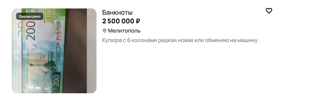 В Мелитополе предложили обменять купюру номиналом в 200 рублей на машину. Соответствующее объявление появилось не так давно на «Авито» - его опубликовали 7 августа.