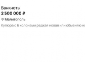 Также продавец предложил купить эту купюру за 2,5 млн рублей.