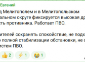 Вечером в четверг, 30 апреля над городом Мелитополь и Мелитопольским районом Запорожской области зафиксирована высокая дроновая активность. Об этом в своем телеграм-канале написал губернатор Евгений Балицкий.