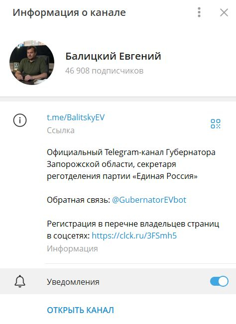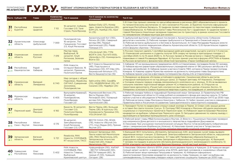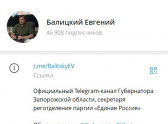 «Блокнот Запорожье» помог Балицкому подняться в топе упоминаемости губернаторов РФ в Telegram