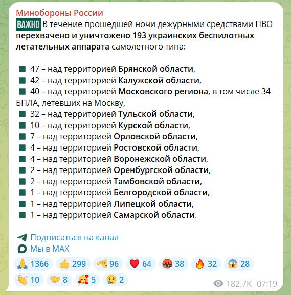 Только по официальным данным в ночь на 27 октября российскую территорию атаковали 193 украинских беспилотных летательных аппарата самолетного типа. Также дроны ВСУ бьют по стране и в течение светлого времени суток.