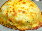 Заливаем все взбитыми яйцами и сливками с солью и перцем, сверху посыпаем сыром.
