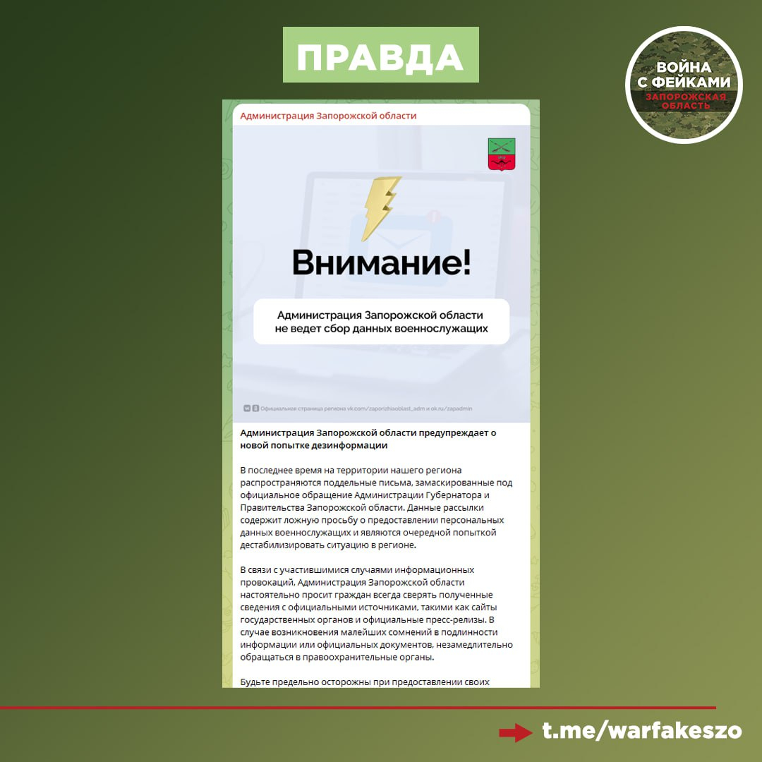 Администрация Запорожской области разоблачила поддельные письма с требованием предоставить личные данные военнослужащих.