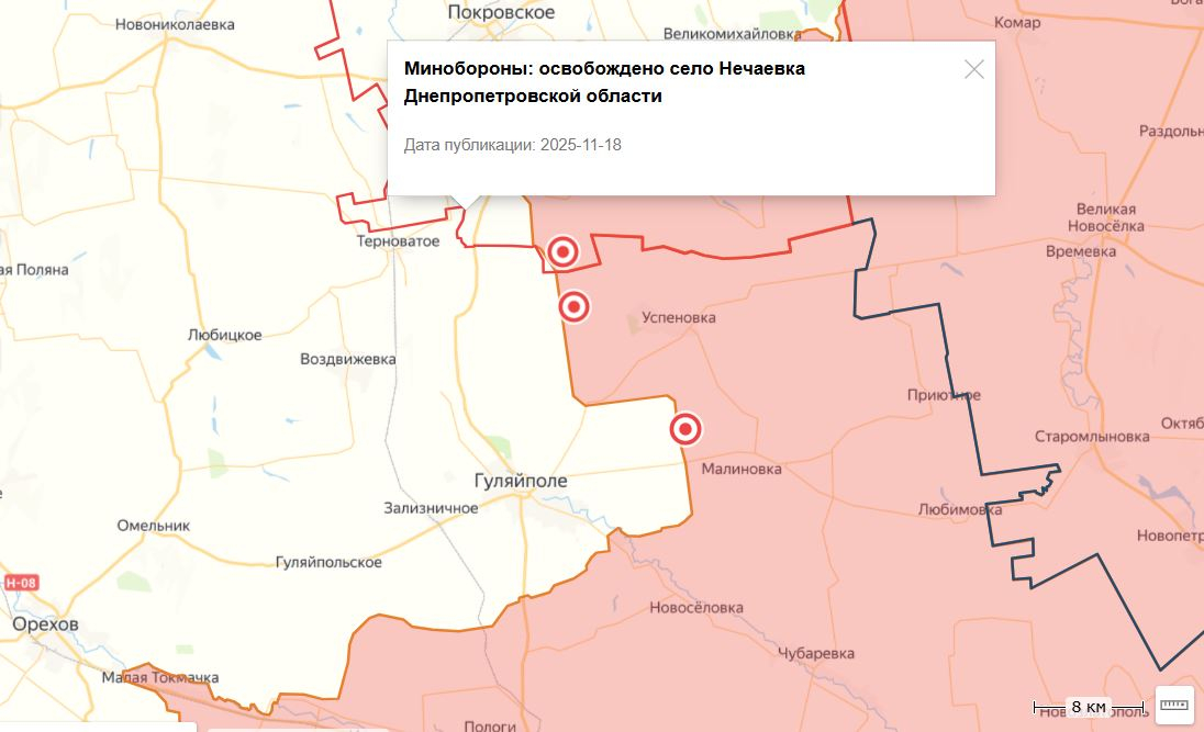 Подразделения группировки войск «Восток» продвинулись в глубину обороны противника и освободили Нечаевку в Днепропетровщине. Об этом рассказали в пресс-службе Минобороны РФ сегодня, 18 ноября.