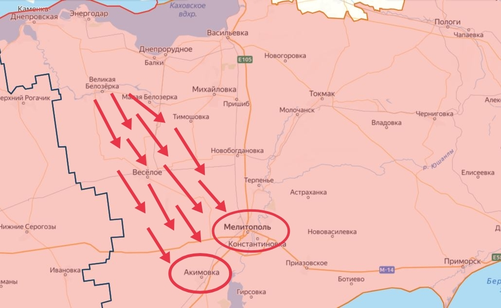 Так, сообщалось о группе дронов ВСУ, которая направлялась от Большой Белозерки в сторону Мелитополя. Также угроза непосредственных ударов украинских беспилотников нависла над Акимовкой и близлежащими населёнными пунктами.