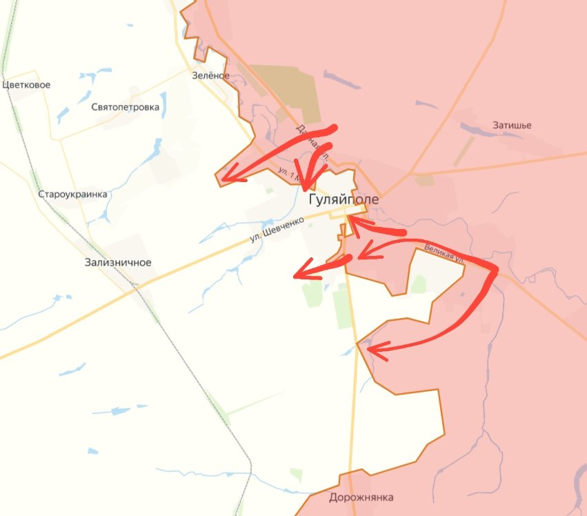 На юге освободили всё, а также подошли к дороге между Гуляйполем и Дорожнянкой, на севере удалось выйти с востока города через реку Гайчур, пройти через частную застройку и занять улицу Аллы Оношко, которая находится на самой западной окраине.