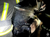 Как видно на кадрах с места ЧП, передняя часть легковушки сгорела почти полностью. По данным спасателей, машина воспламенилась из-за короткого замыкания электропроводки в ней.