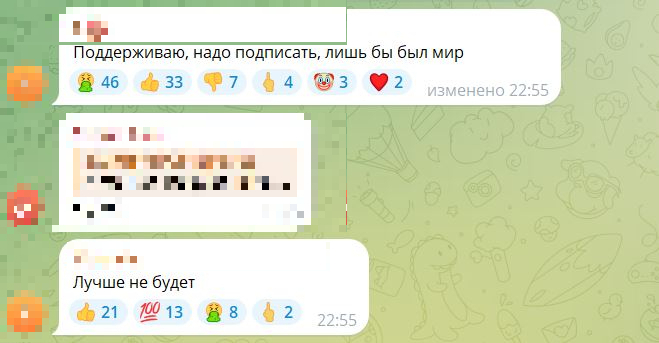 «Поддерживаю, надо подписать, лишь бы был мир», – заявил другой комментатор.