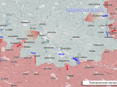 Судя по опубликованной карте, ВС РФ активно штурмуют позиции ВСУ на участке Мирное – Гуляйпольское – Чаривное и вдоль линии Рождественское – Верхняя Терса.