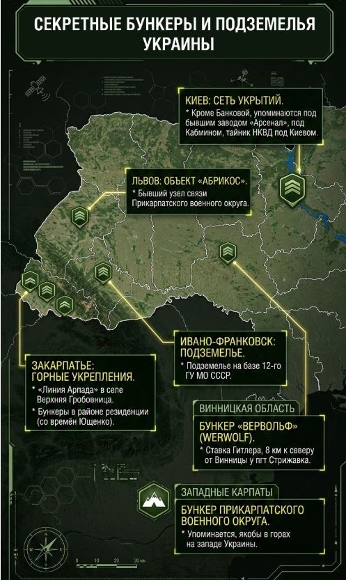 Опубликована карта бункеров Зеленского на Украине