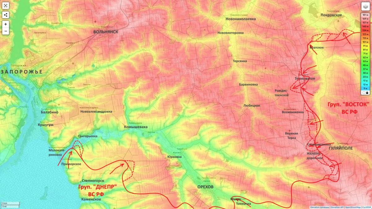 Накануне в пресс-службе Минобороны РФ объявили об освобождении российскими военными села Староукраинка, расположенного между Железнодорожным и Верхней Терсой – в 6 км на запад от Гуляйполя.