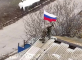 Появились кадры, как военные ВС РФ водружают флаг над взятым селом.