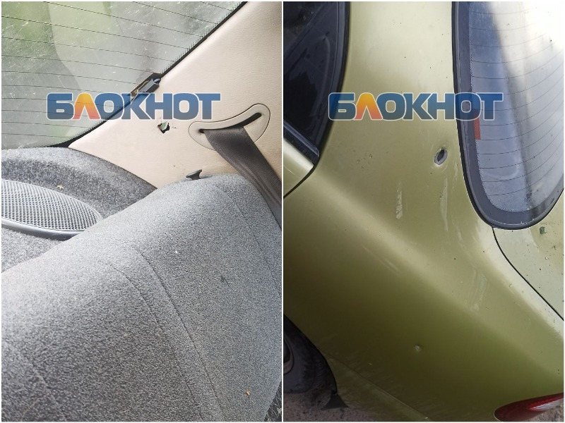 Как он утверждает, машину и заборы сильно изрешетило осколками, что видно на фотографиях с места ЧП.