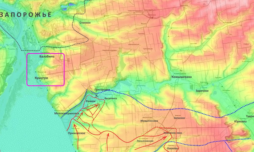 «Что интересно: украинские околовоенные волонтёры отмечают, что наши диверсионно-разведывательные группы начали проникать севернее реки Конка. Это севернее Приморского, Речного, и их видели даже в районе Кушугума и Балабино. То есть, это уже непосредственные пригороды Запорожья, потому что Балабино плавно переходит в южные окраины Запорожья», — сказал Подоляка.