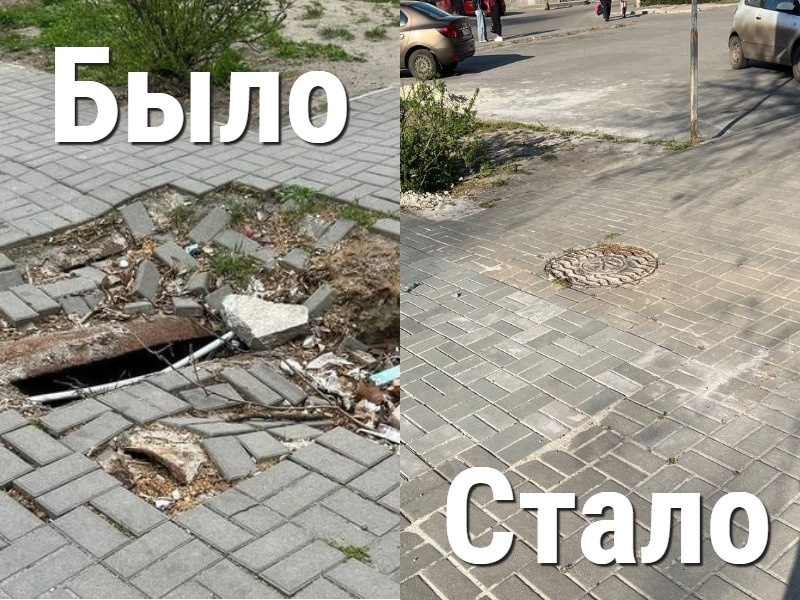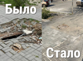 Сейчас же яму заделали, и на месте уложена свежая тротуарная плитка.