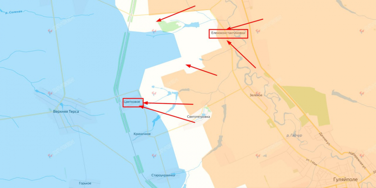 Российские войска развили наступление к западу от реки Гайчур на Омельниковском направлении и смогли взять под полный контроль населенный пункт Еленоконстантиновка Запорожской области. Об этом в своем телеграм-канале сообщил координатор Николаевского сопротивления Сергей Лебедев.