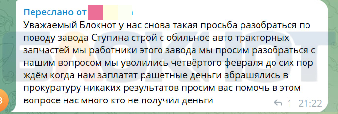 К нам обратились теперь уже бывшие сотрудники предприятия, которые не могут получить расчет.