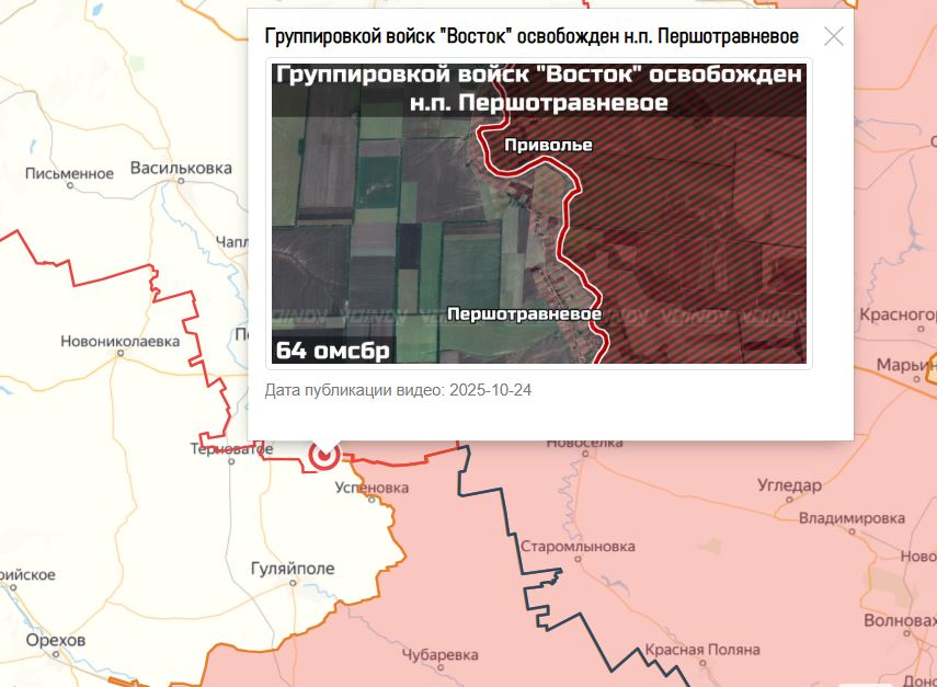 ВС РФ освободили новое село Першотравневое в Днепропетровщине, у границы с Запорожской областью. Это произошло сегодня, 24 октября, сообщил телеграм-канал «Воин DV».