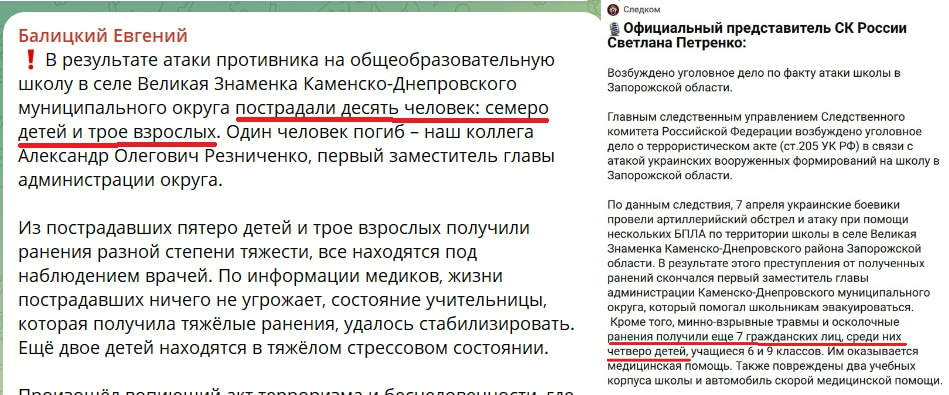 - Ранены дети, убит замглавы района: что известно об ударе ВСУ по школе во время уроков в Запорожской области (сегодня, 16:04)