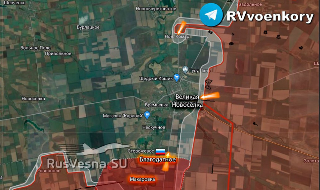 Он объяснил, что наступление ВС РФ к Великой Новосёлке позволит взять под огневой контроль трассу снабжения группировок ВСУ между ореховским и времевским направлениями запорожского фронта.