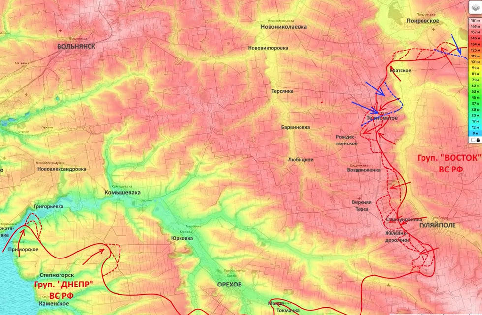 Тем временем группировка «Восток» в районе Гуляйполя, как отметил Подоляка, продолжает атаковать по направлению к Верхней Терсе.