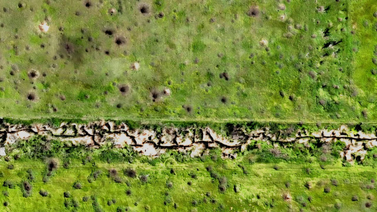 А еще он наглядно проиллюстрировал, как выглядит земля после многочисленных прилётов дронов и артиллерийских боеприпасов.