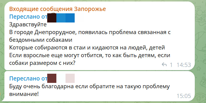 В среду, 21 января, в редакцию «Блокнота» поступило сообщение от жительницы города Днепропрудное Запорожской области о том, что люди там страдают от бездомных собак.